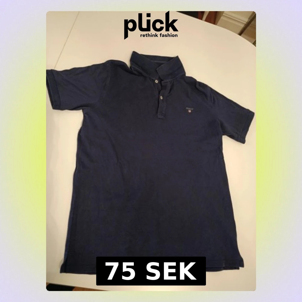 Säljer en klassisk marinblå pikétröja från Gant med korta ärmar och krage. Tröjan har knappar framtill och diskret logotyp på bröstet. Perfekt för en avslappnad och stilren look.