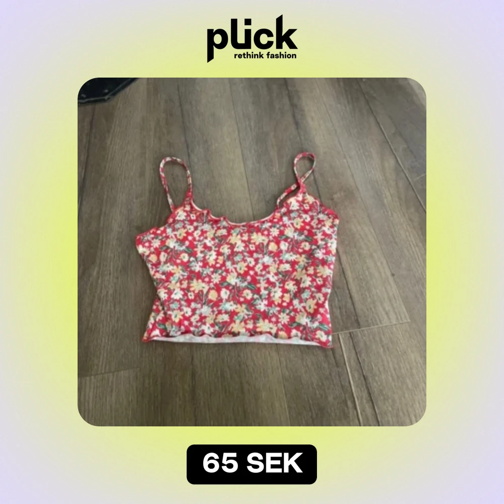 Säljer en superfin blommig linne från Shein i storlek XS. Den är röd med ett färgglatt blommönster i gult och grönt. Perfekt för sommardagar med sina smala axelband och croppad passform. Materialet känns lätt och luftigt.