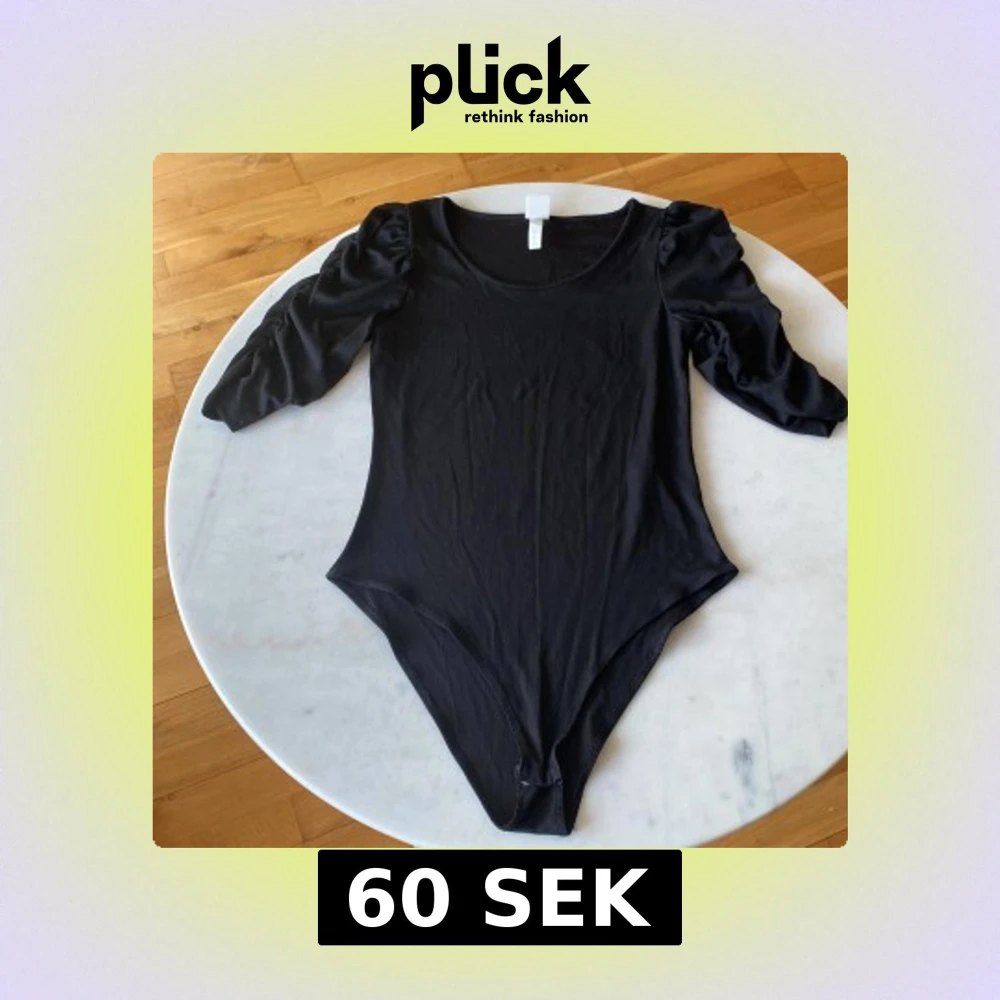 Svart ribbad body med rund halsringning och snygga puffärmar i trekvarts längd. Tight passform som framhäver siluetten och ger en trendig look. Perfekt att styla med jeans eller kjol för en cool outfit.