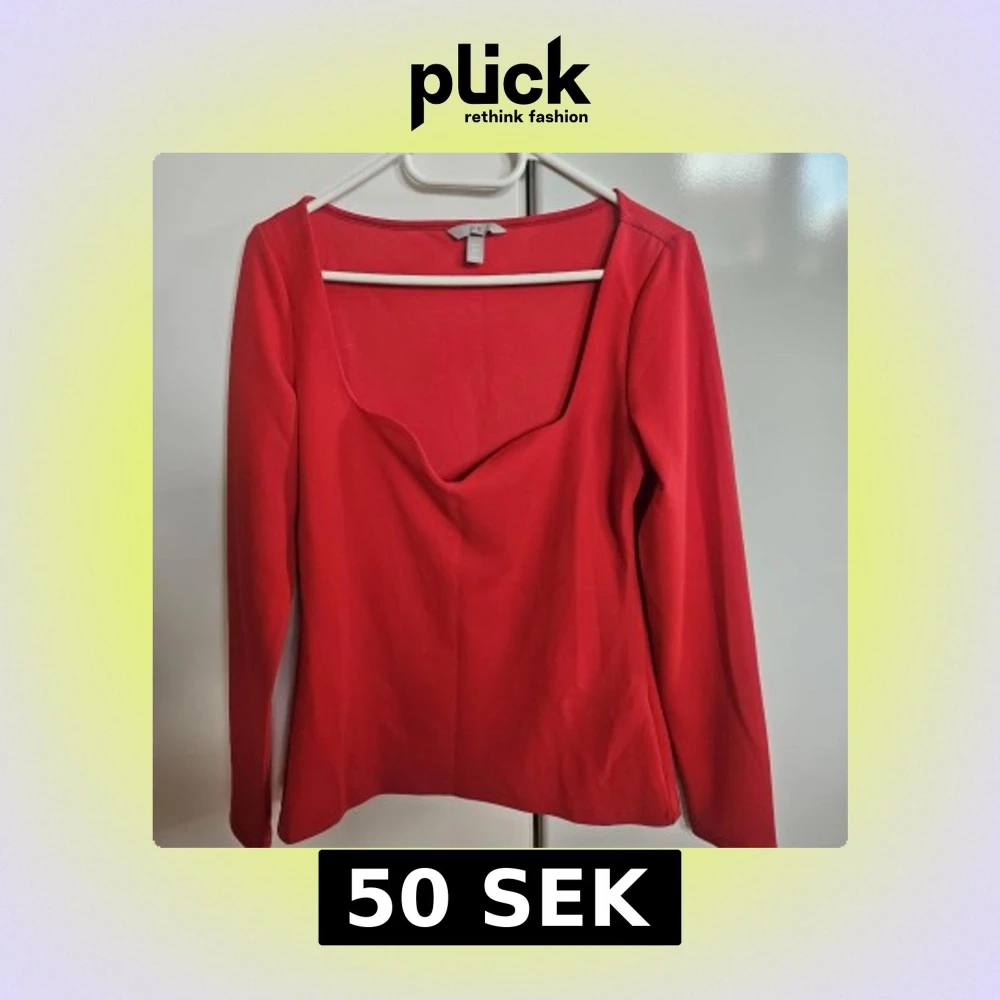 Snygg röd långärmad topp från H&M med djup v-ringning och figurnära passform. Toppen har en enkel design utan mönster och är tillverkad i ett mjukt, stretchigt material som sitter skönt på kroppen. Perfekt för dig som gillar stilrena plagg med en twist.