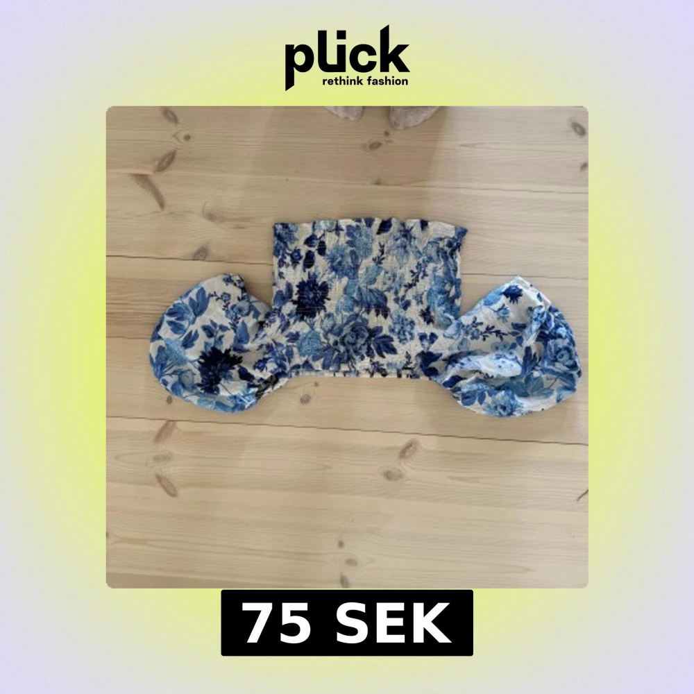 Supersöt offshoulder topp från H&M med blått blommönster på vit botten. Toppen har puffiga ärmar och smockad, elastisk överdel som sitter snyggt. Perfekt för dig som gillar romantisk och trendig stil. Materialet känns lätt och luftigt.