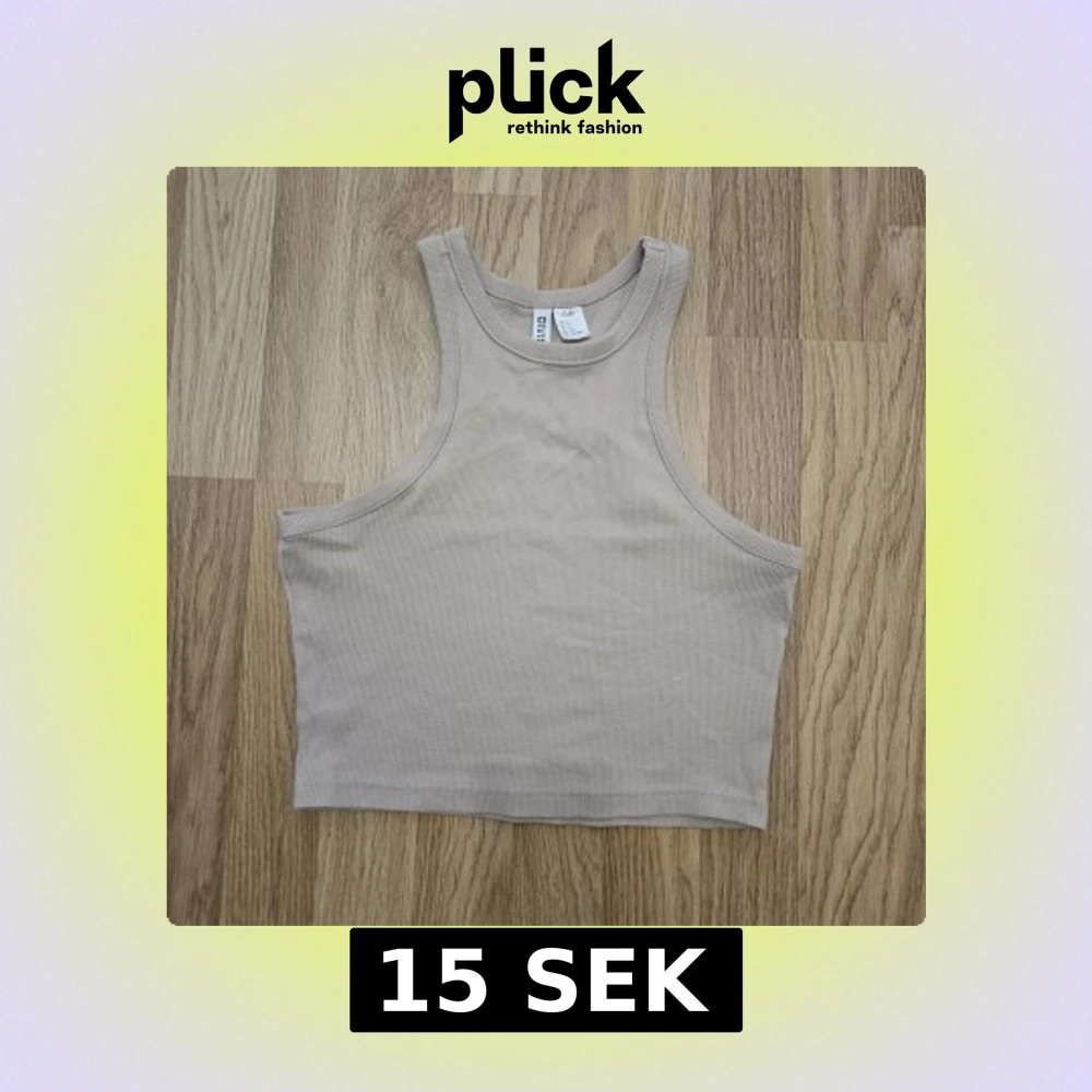 Säljer en beige croppad linnetopp från h&m Divided. Toppen är ribbad och har en sportig, ärmlös design med breda axelband och rund halsringning. Perfekt för varma dagar eller att styla lager på lager.