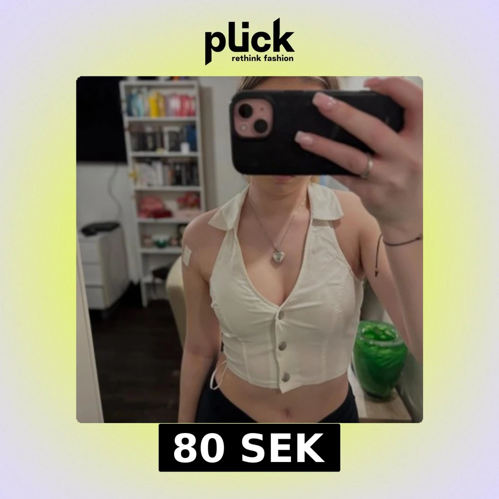 Snygg vit ärmlös topp med knappar framtill. Toppen har en krage och är croppad, den har även en halv öppen rygg . Perfekt för varma dagar eller som en del av en lager-på-lager outfit.