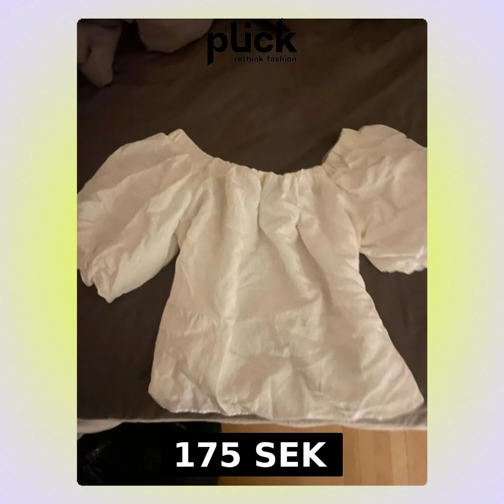 Säljer en vit offshoulder blus från H&M i storlek S. Blusen har puffiga korta ärmar och en lös passform med resår vid axlarna. Perfekt för dig som gillar romantisk och trendig stil. Materialet känns lätt och luftigt.