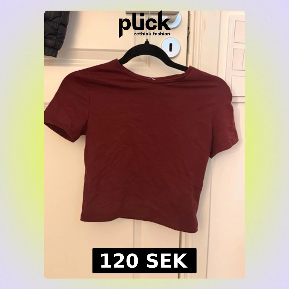 En enkel och stilren mörkröd croppad t-shirt med rund hals och korta ärmar. Perfekt att matcha med höga jeans eller kjol för en trendig look. Tillverkad i mjukt bomullsmaterial som känns skönt mot huden.