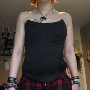 Svart korsett - Svart korsett/topp. Köpt av en tjej på Plick men aldrig använd av varken henne eller mig. Står storlek M men skulle säga att den sitter som en S!