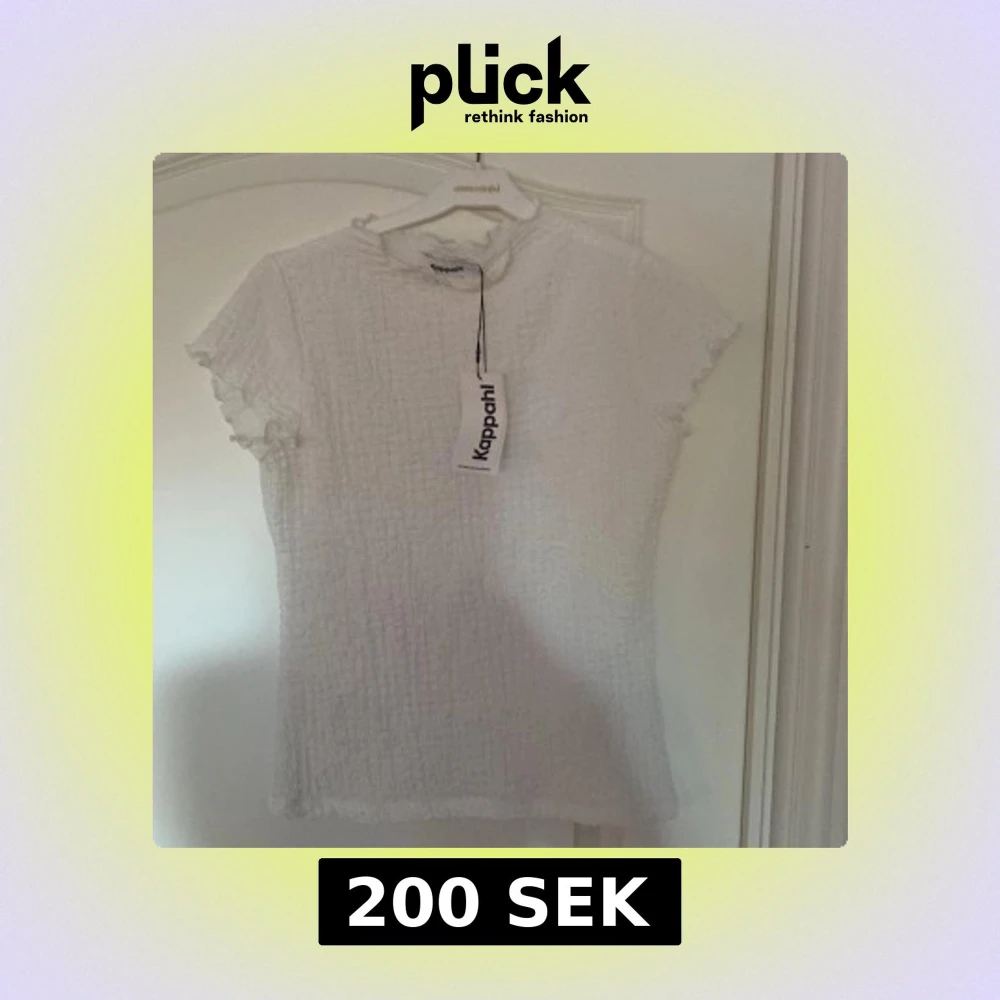 Vit tunn tröja från Kappahl. Materialet har textur och är väldigt skönt. Det är en liten krage uppe vid halsen. Tröjan är lite genomskinlig beroende på vad man har under.