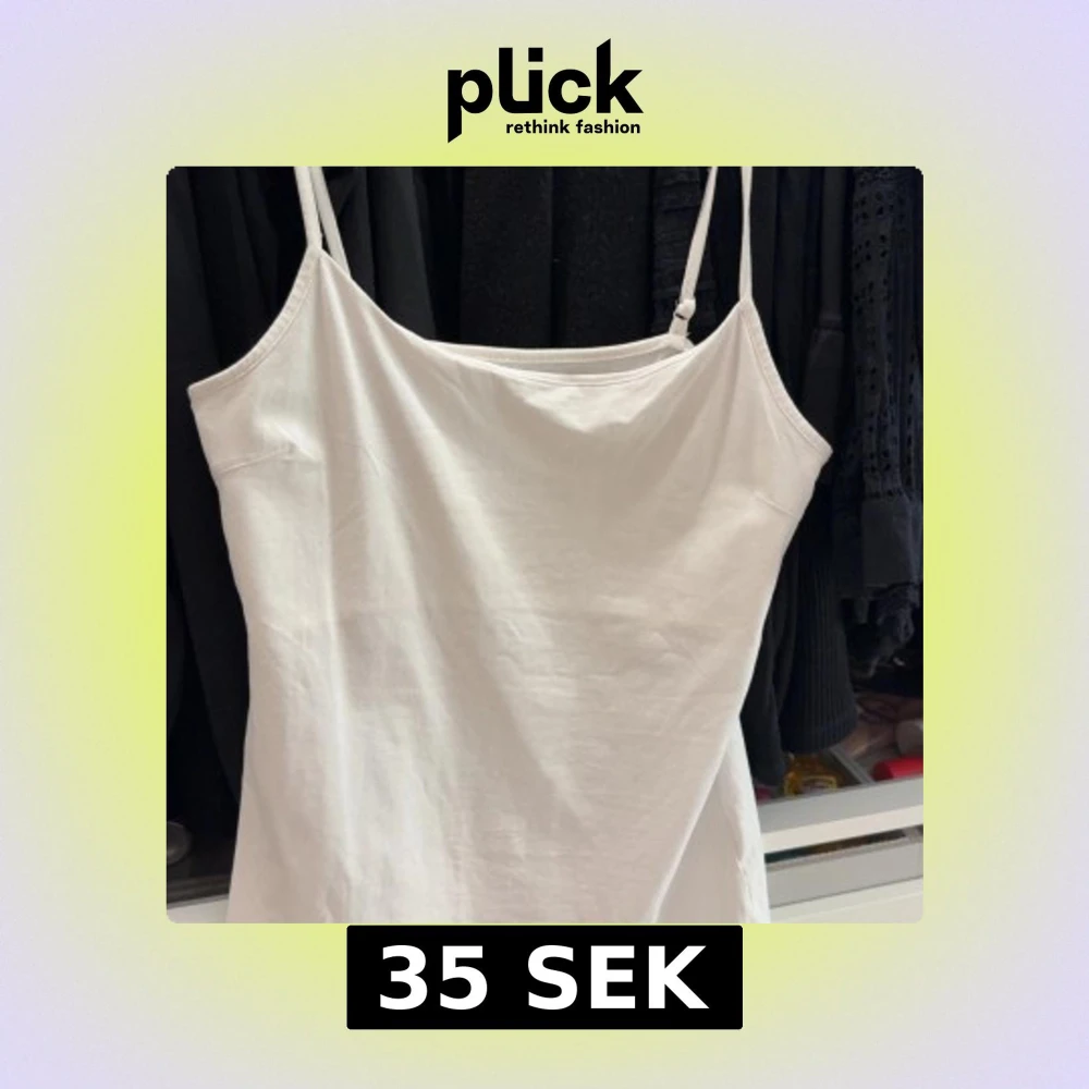 Säljer en enkel och stilren vit linnetopp med smala justerbara axelband. Perfekt att matcha med jeans eller kjol för en fräsch look. Toppen är i mjukt material och har en rak passform.