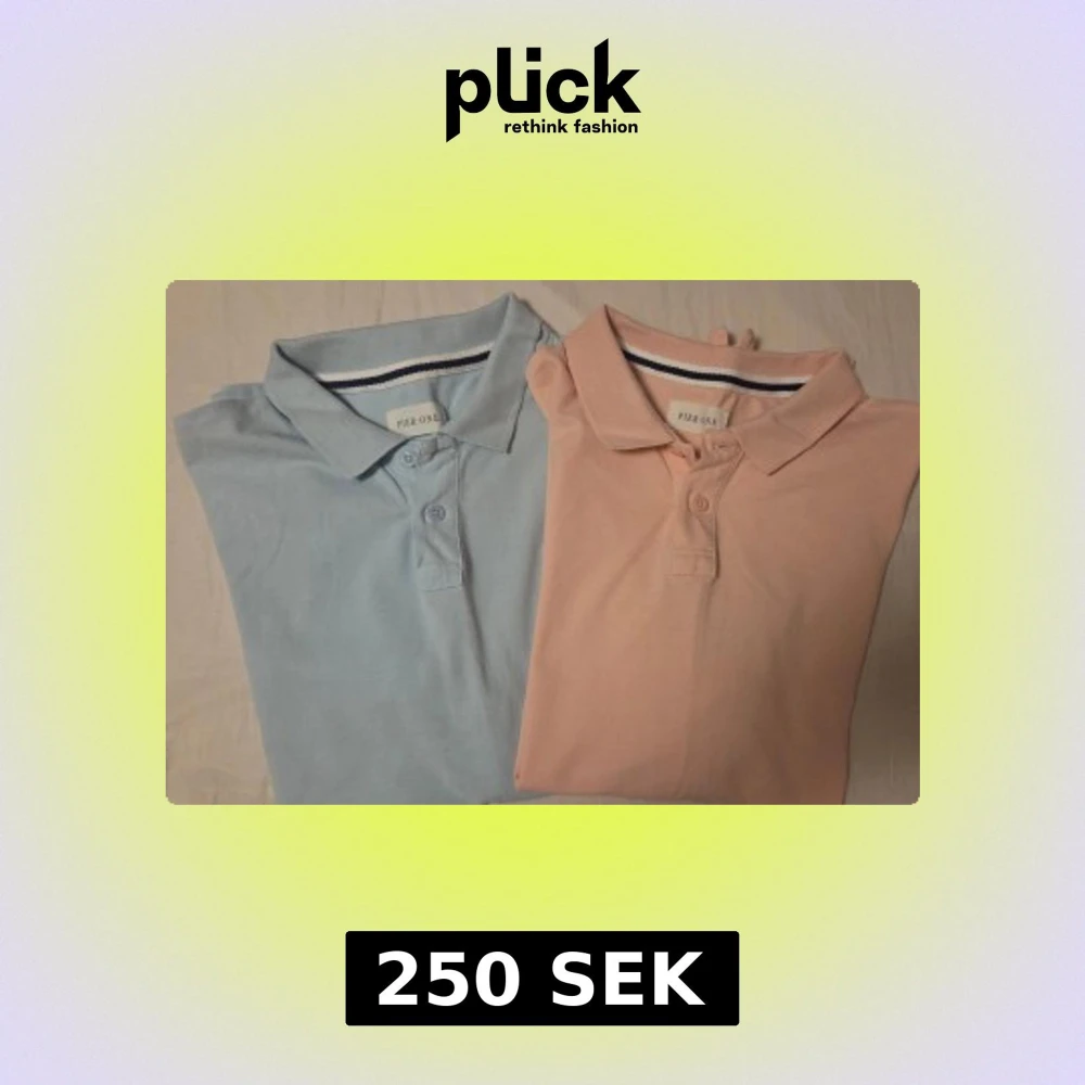Två stilrena polotoppar från Pier One, en i ljusblå och en i ljusrosa. Båda har klassisk krage, korta ärmar och knappslå framtill. Materialet är mjuk bomull som känns skönt mot huden. Perfekt för dig som gillar enkel och fräsch stil.