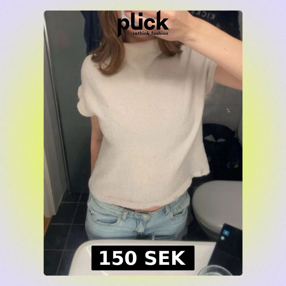 Snygg beige stickad topp med korta ärmar och halv polo. Inga defekter