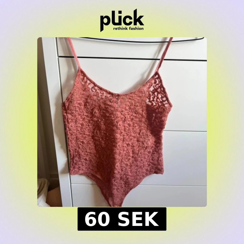 Säljer en snygg korall body med smala axelband och spetsmönster.