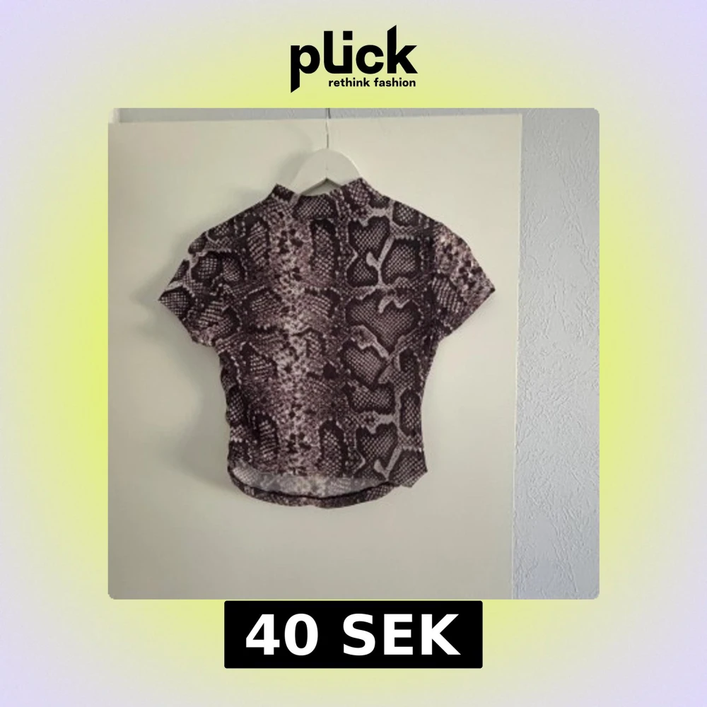 Säljer en cool kortärmad topp med ormmönster i svart och grått. Perfekt för en trendig look. Toppen har en hög hals och är tillverkad i ett lite genomskinligt material .