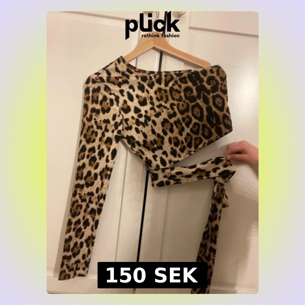 Trendig leopardmönstrad omlottopp med ett snett skuren hals och en arm och knytning i midjan super söt topp storlek m men passar som s