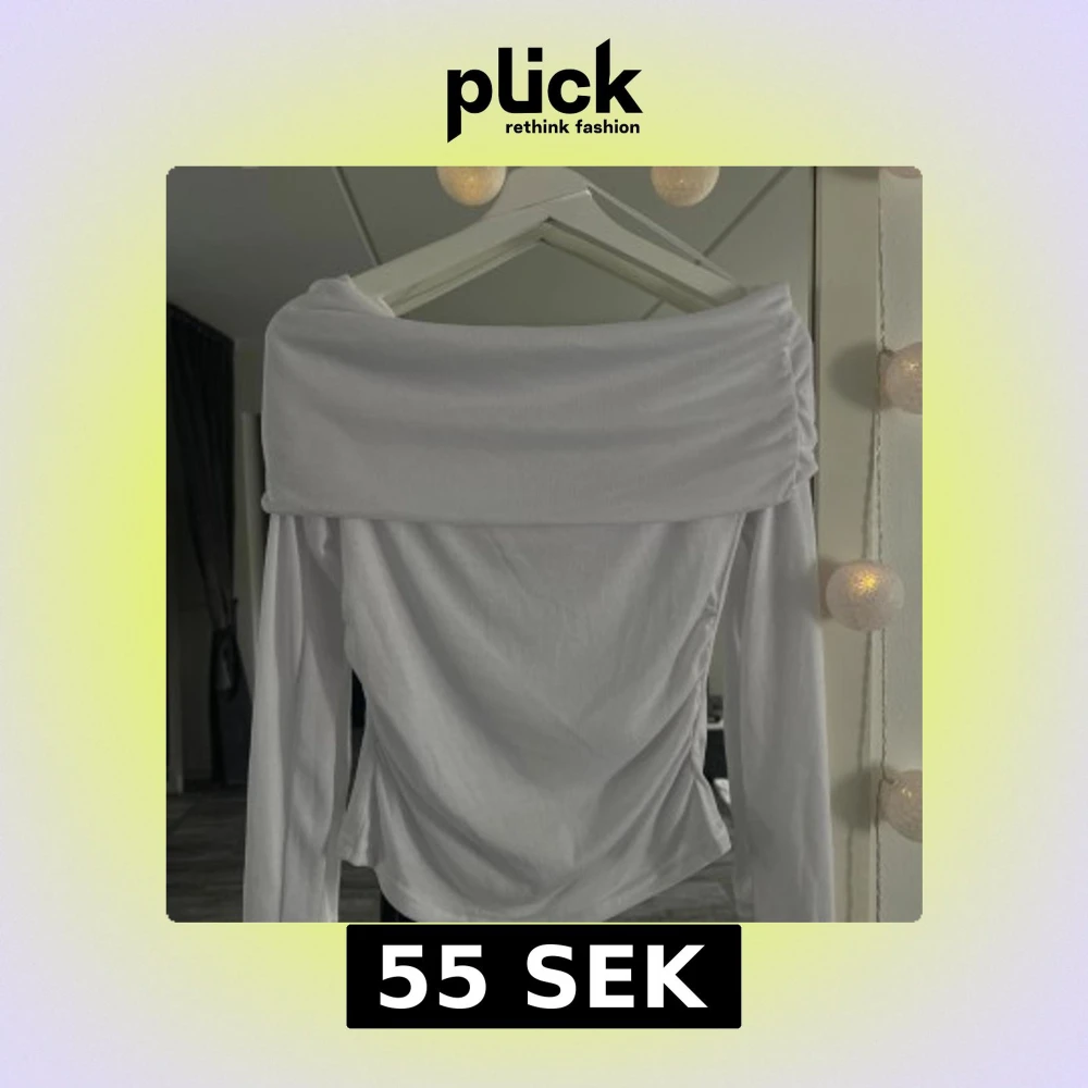 Säljer en stilren vit offshoulder topp med långa ärmar. Toppen har en bred, vikt kant över axlarna som ger en snygg och trendig look. Perfekt att matcha med jeans eller kjol för en clean och fräsch outfit. Aldrig använd.