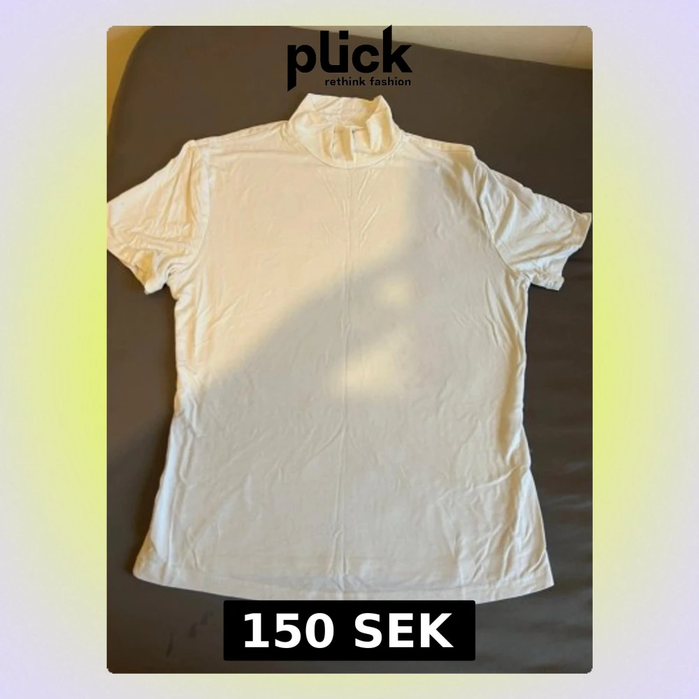 Säljer två stilrena polotoppar, en i vitt och en i svart. Båda har hög krage och korta ärmar, perfekta att matcha med jeans eller kjol. Materialet känns mjukt och stretchigt, troligen polyester eller bomullsmix. Passformen är normal och de är enkla att styla.