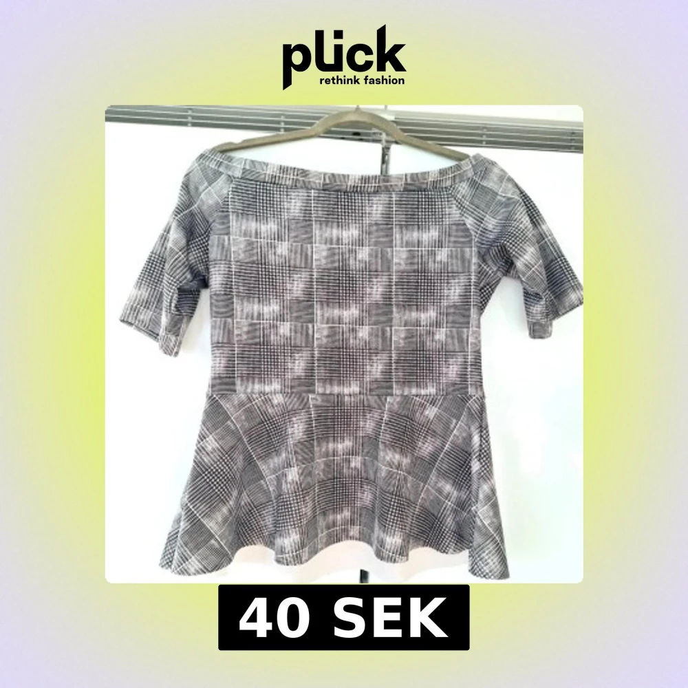 Trendig offshoulder topp med rutigt mönster i svart och vitt. Modellen har korta ärmar och en lätt utsvängd midja som ger en snygg siluett. Perfekt att styla med jeans eller kjol för en cool look.