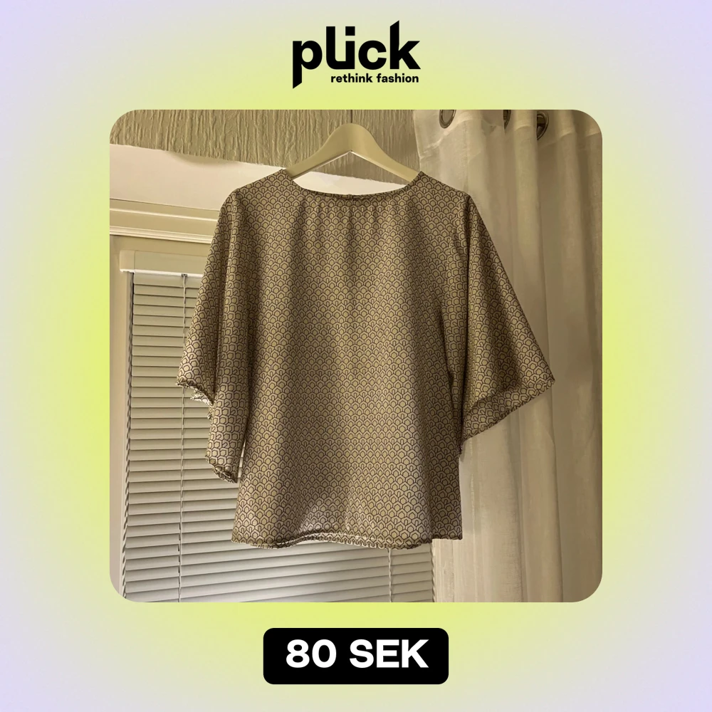 Säljer en snygg blus med ett unikt mönster i beige och svart. Blusen har vida trekvartsärmar och en lös passform, perfekt för både vardag och fest. Materialet känns lätt och luftigt, vilket gör den idealisk för vår och sommar.