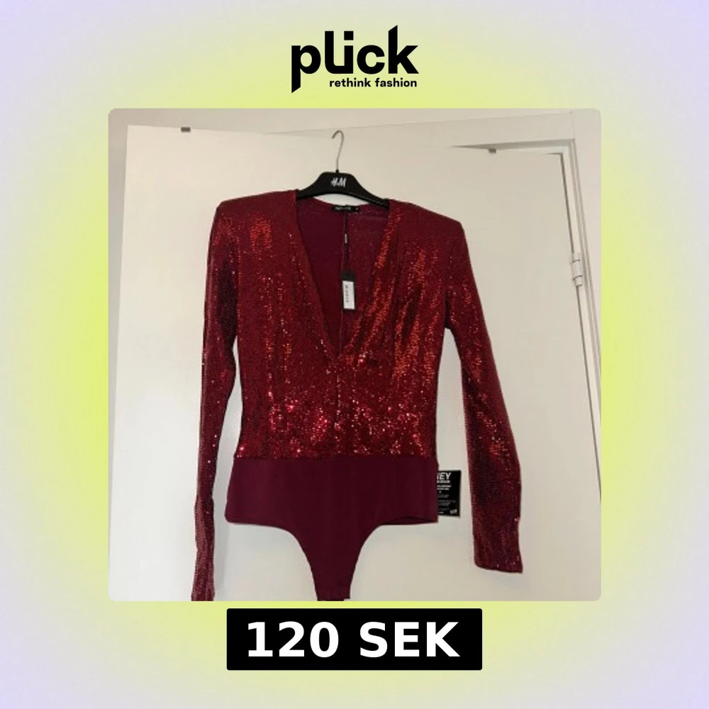 Snygg röd bodysuit från NLY One med glittriga paljetter och djup v-ringning. Perfekt för en festlig kväll. Bodysuiten har långa ärmar och en åtsittande passform.