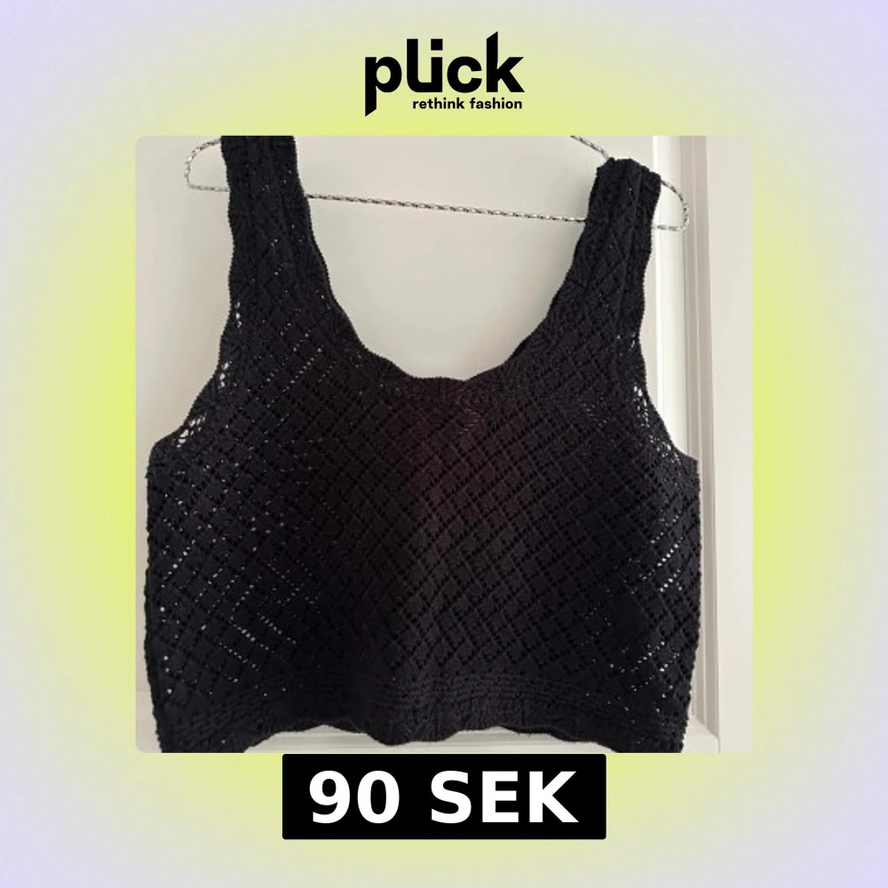 Svart virkad linnetopp från H&M Divided i storlek M. Toppen har ett snyggt hålmönster och breda axelband. Perfekt för sommaren och enkel att styla med både jeans och kjol. Luftig och trendig look!