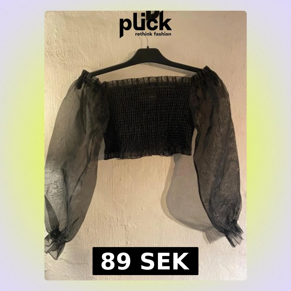 Trendig svart offshoulder topp från NA-KD med smockad kropp och transparenta, vida långärmar i mesh. Perfekt för dig som vill sticka ut med en cool och luftig look. Snygg croppad passform och elastisk överdel för extra komfort. Aldrig använd.