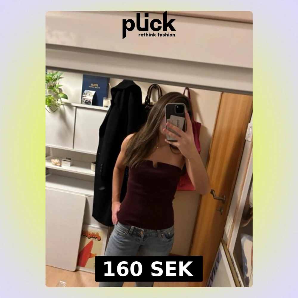 Säljer en vinröd bandeau tubtopp med en snygg liten v-formad detalj framtill. Toppen är axelbandslös och har en tight passform som sitter på plats. Materialet känns stretchigt och mjukt, perfekt att styla med jeans eller kjol.