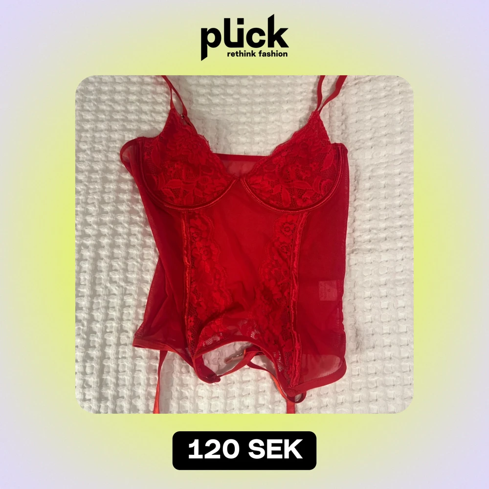 Snygg röd korsett med spetsdetaljer och justerbara axelband. Perfekt för en festlig kväll eller speciella tillfällen. Den har en tight passform och är gjord i ett syntetmaterial som ger en smickrande siluett. Fästena nedtill gör den extra elegant.