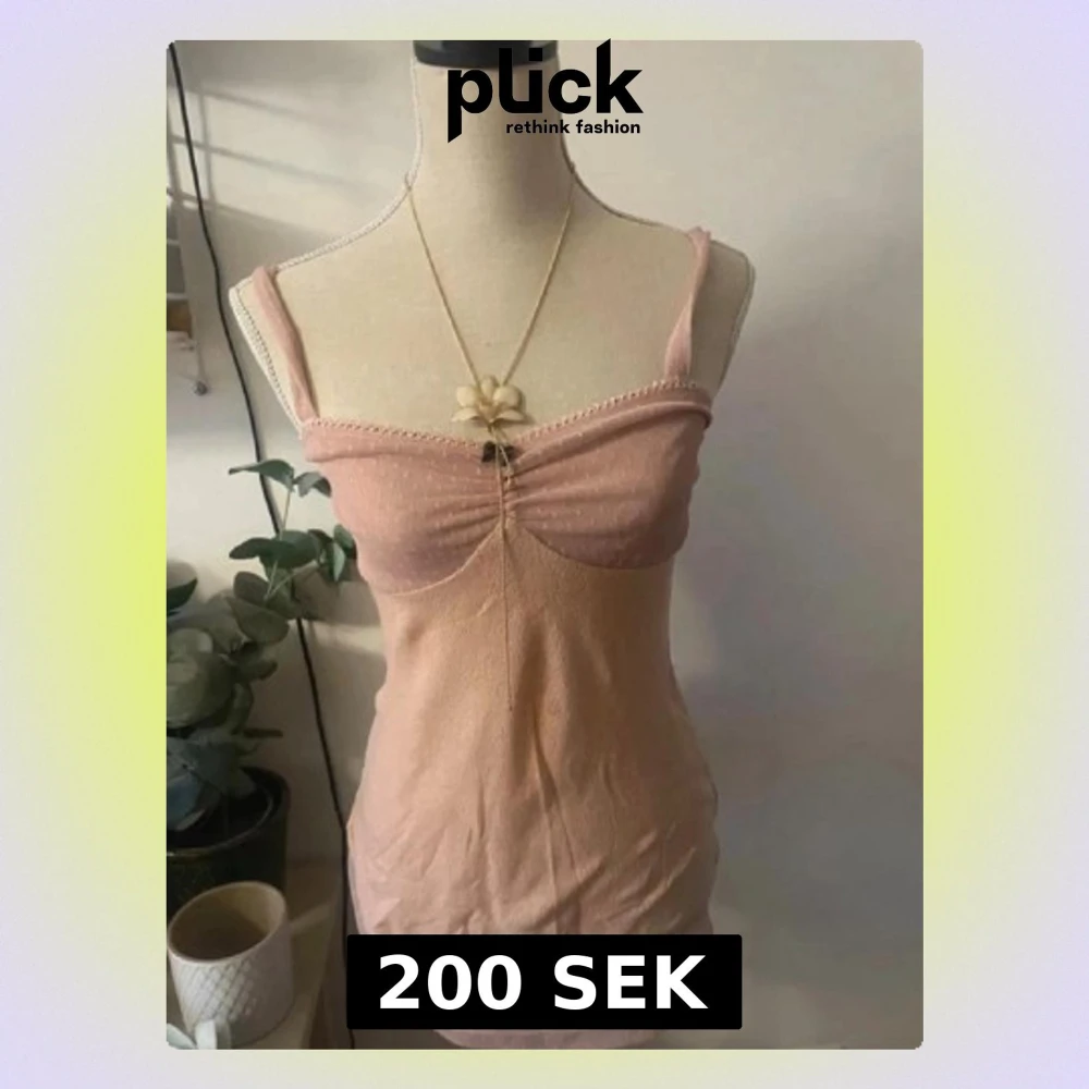 Säljer en söt ljusrosa linnetopp med tunna axelband och spetsdetaljer. Toppen har en liten svart rosett framtill och är gjord i ett transparent mesh-liknande material med diskret prickigt mönster. Perfekt för lager på lager eller sommarens varma dagar.