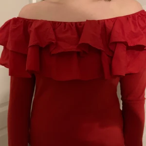 Röd offshoulder tröja med volanger från hm, använt en gång:) 50kr+frakt