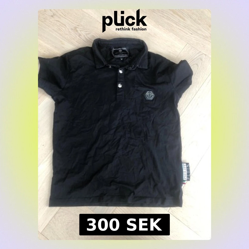 Cool svart polotopp från Philipp Plein med korta ärmar och klassisk krage. Toppens bröst pryds av ett metallic PP-emblem och den har knappar framtill. Perfekt för dig som gillar exklusiva märken och stilren design.