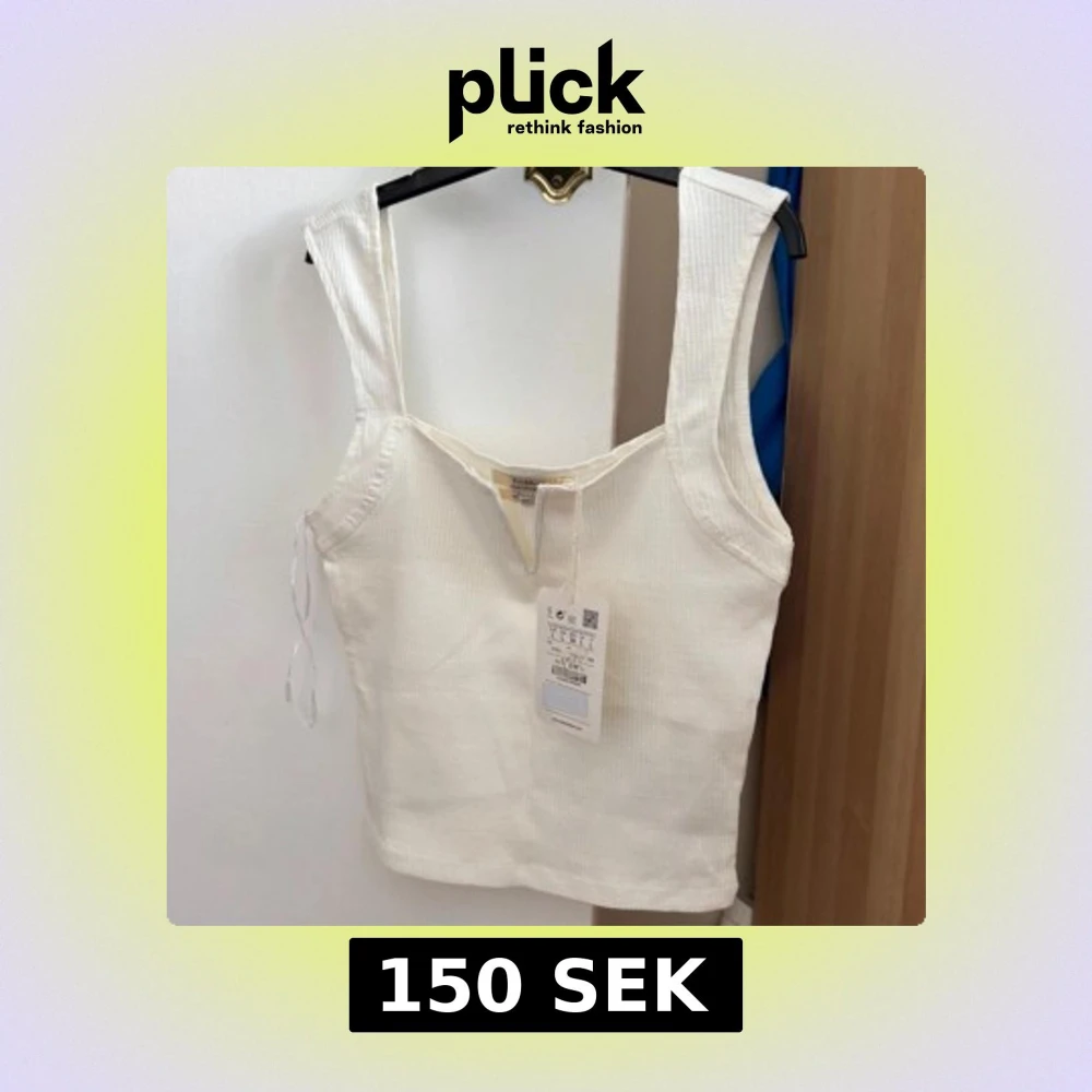 Snygg vit ribbad linnetopp från Pull&Bear med breda axelband och en liten v-ringning framtill. Toppen har en croppad passform och är tillverkad i mjuk bomull, perfekt för varma dagar. Enkel men stilren design som är lätt att matcha.
