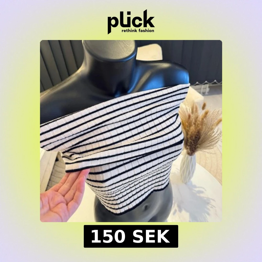 Snygg randig offshoulder topp i svart och beige. Denna ribbade topp har en stilren design med horisontella ränder och en tight passform. Perfekt för att ge din outfit en trendig touch. Passar bra i m/l storlek. Jag rekommenderar den varmt.🌸👌