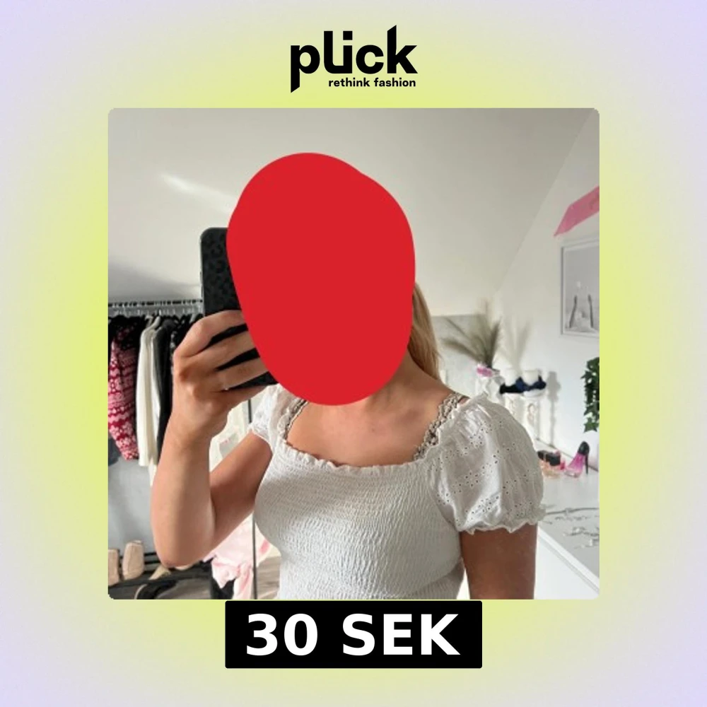 Superfin vit blus med smockad kropp och korta puffärmar i broderad bomull. Söt volangkant vid halsringningen och ärmarna ger en romantisk vibe. Perfekt för dig som gillar detaljer och en feminin stil.