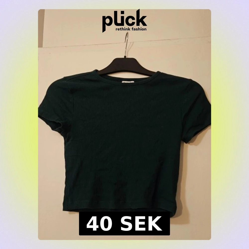 En enkel och stilren mörkgrön croppad topp med ribbad struktur och korta ärmar. Perfekt till höga jeans eller kjol för en avslappnad look.