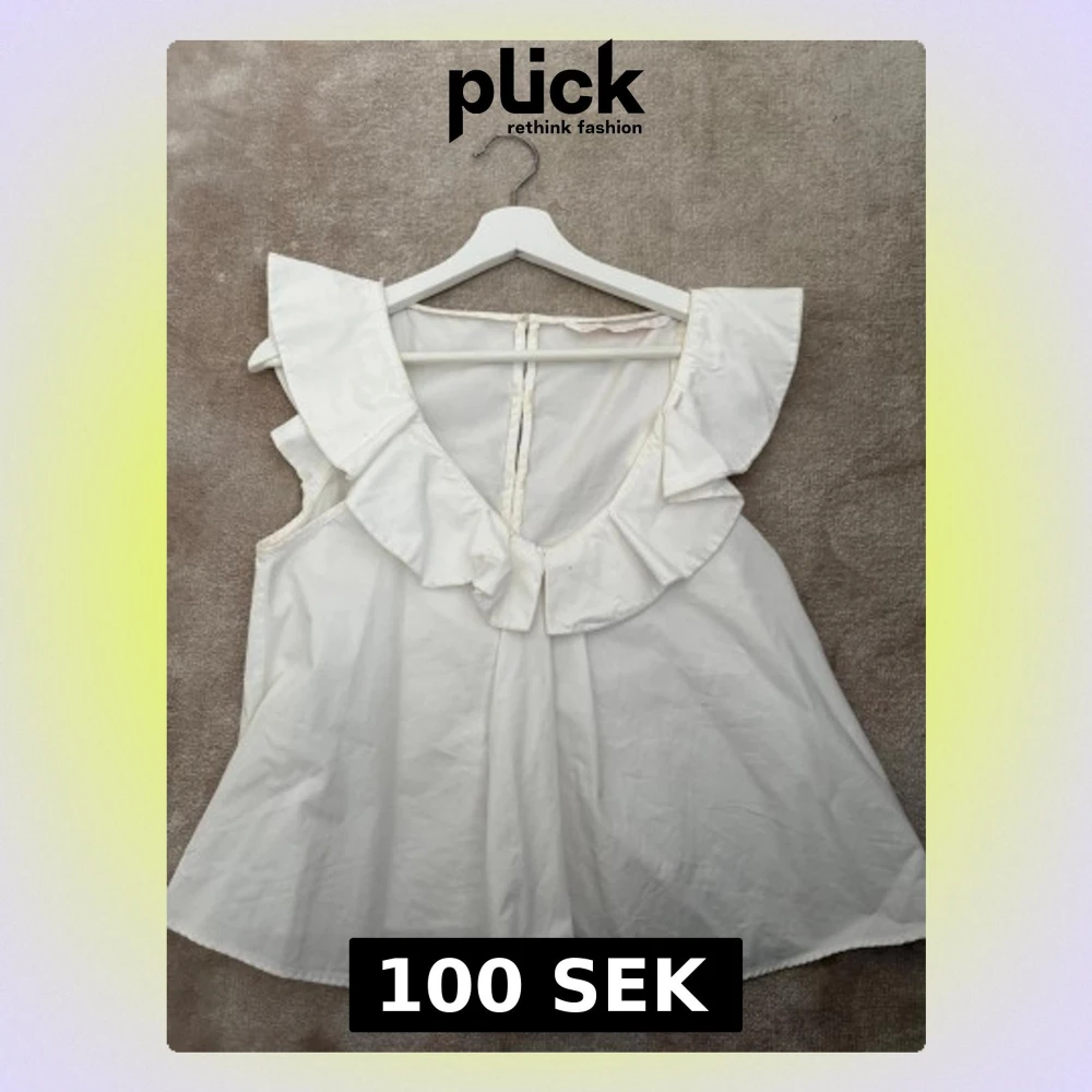 Säljer en vit blus från Zara Trafaluc collection i storlek S. Blusen har bred volang runt halsringningen och är ärmlös med en lätt A-linjeformad siluett. .