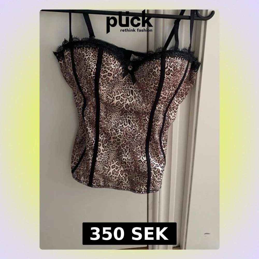 Snygg leopardmönstrad korsett med svarta detaljer och spetskant upptill. Axelbanden är justerbara och framtill finns en liten rosett. Materialet formar kroppen jättefint💗