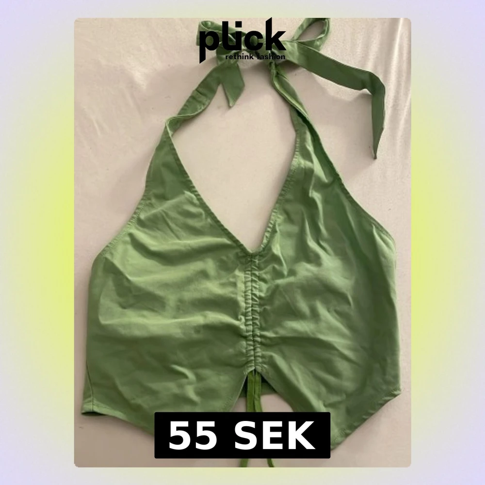 Helt NY Snygg ljusgrön halterneck topp från H&M Divided med knyt i nacken och framtill. Perfekt för semester och varma dagar. Med en croppad passform och är tillverkad i mjuk bomull. Perfekt för varma dagar och enkel att styla med jeans eller kjol.