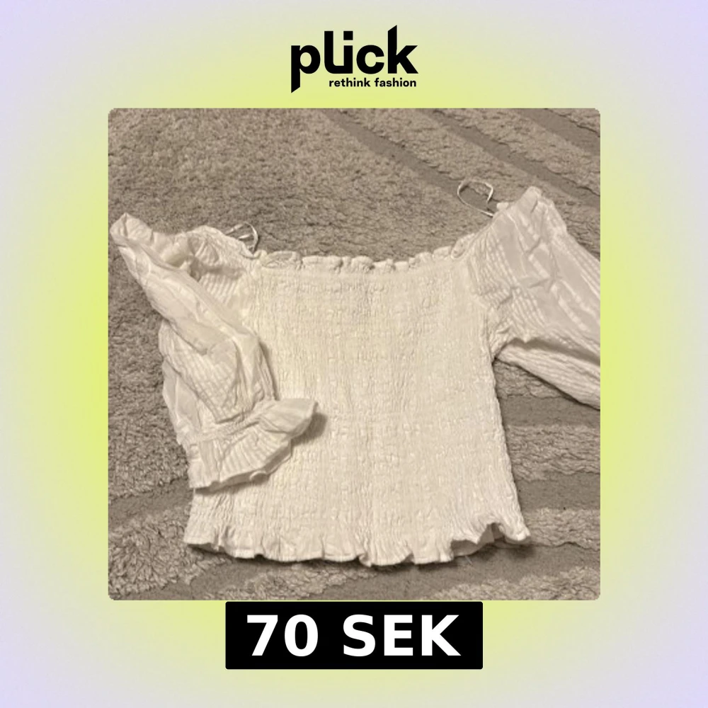 Supersöt vit offshoulder blus med smockad kropp och långa puffiga ärmar. Blusen har volangdetaljer vid ärmslut och nederkant, vilket ger en romantisk vibe. Perfekt för dig som gillar en feminin och trendig stil.