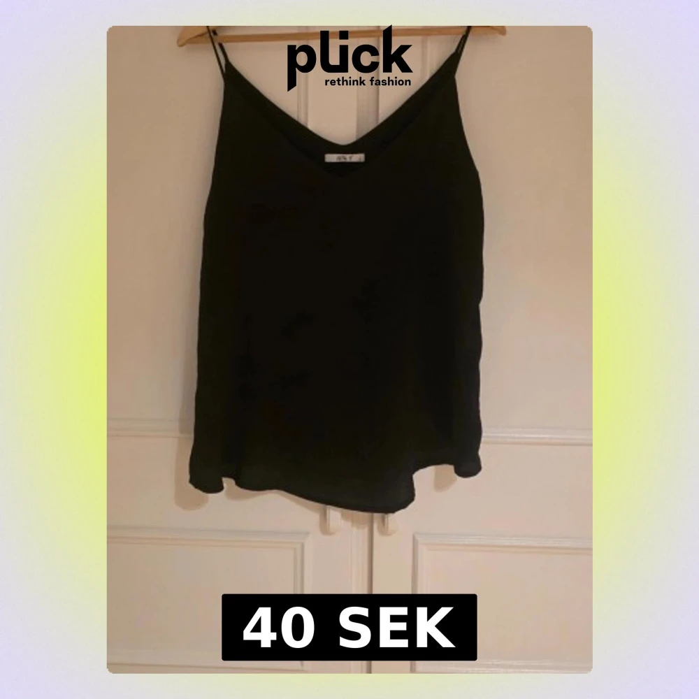 Säljer en enkel och stilren svart linnetopp med tunna axelband och v-ringad hals. Aldrig använd