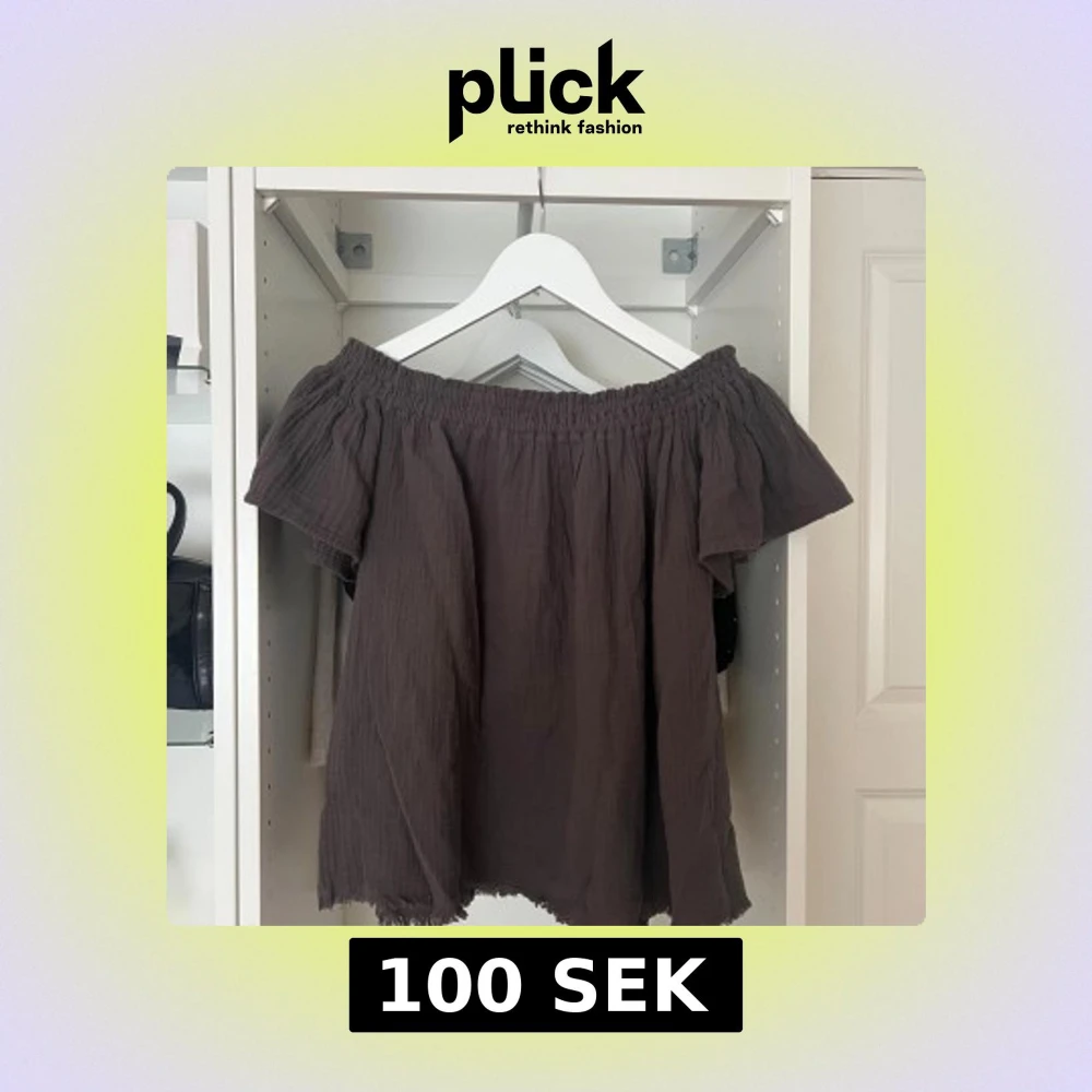 Säljer en brun/grå offshoulder blus med korta ärmar och resår vid axlarna. Pris kan diskuteras!