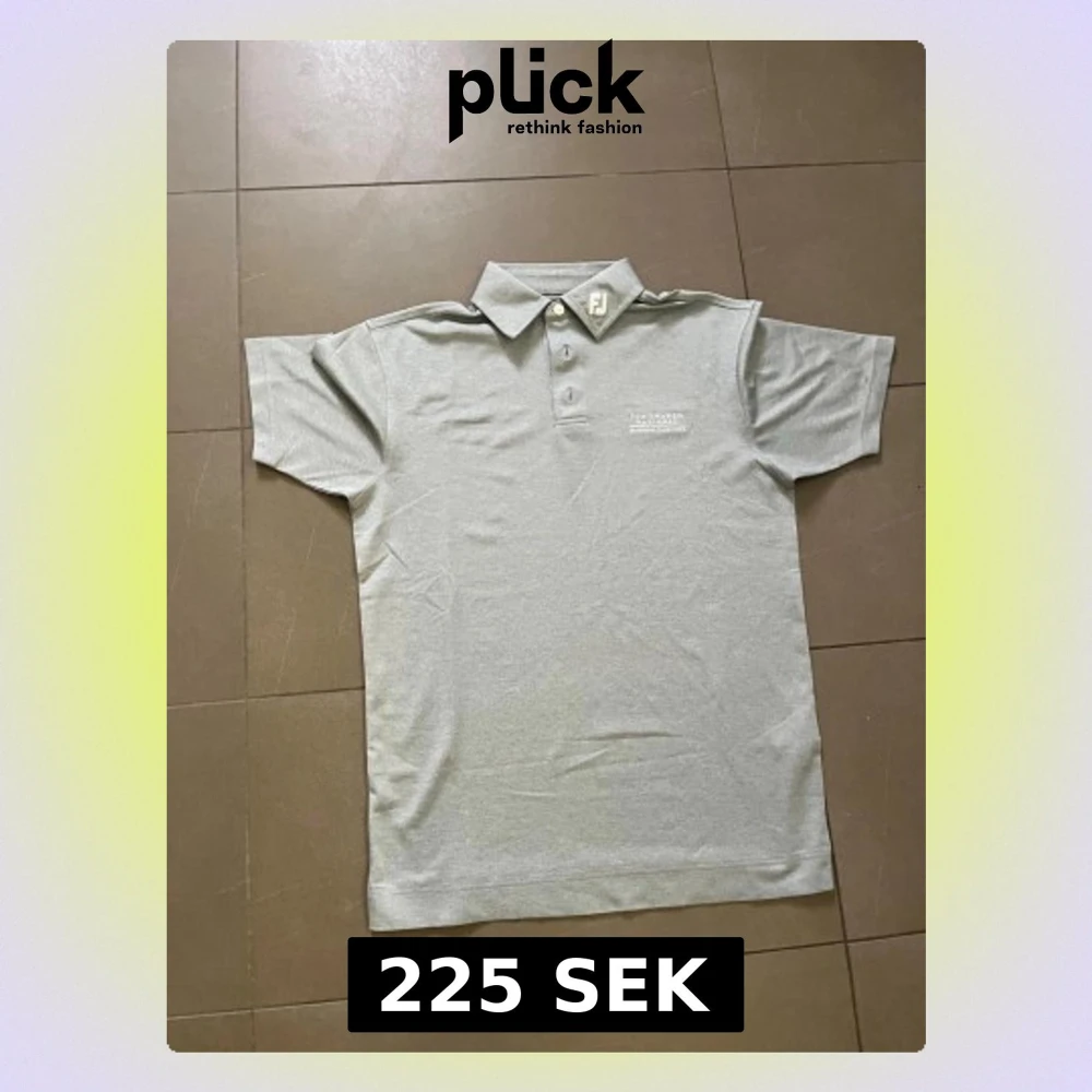 Säljer en stilren grå pikétröja från FootJoy med broderad text 'PGA Sweden National Business Club 2019' på bröstet. Klassisk krage och knappar framtill. Perfekt för dig som gillar golf och vill ha en clean look. Har en till likadan. Skriv om ni vill köpa den med så kan vi fixa paketpris