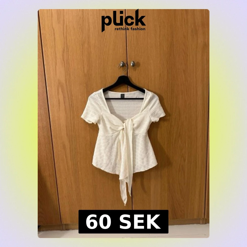 Supersöt vit blus från SHEIN i storlek S med korta ärmar och en stor knytning framtill. Bara att skriva vid funderingar☺️