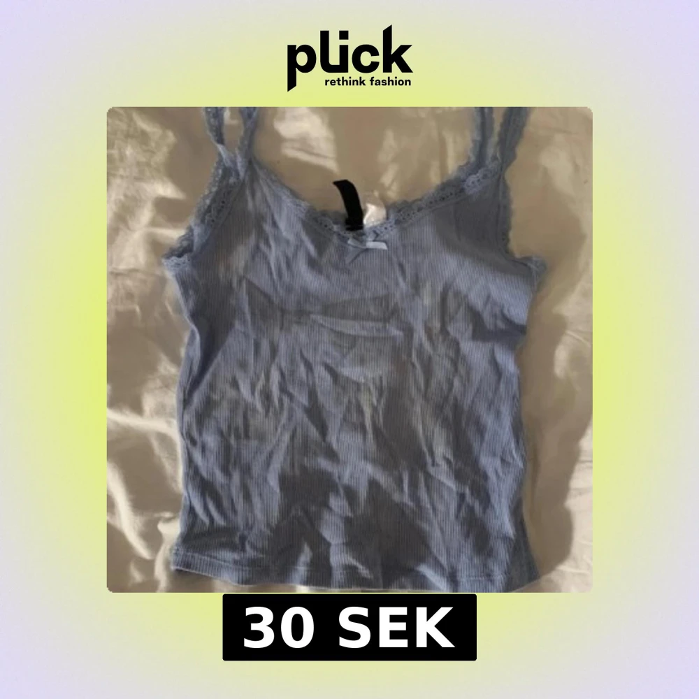 Ljusblå ribbad linnetopp med spets - Supersöt ljusblå linnetopp med ribbad struktur och breda axelband i spets. 🩵🦋