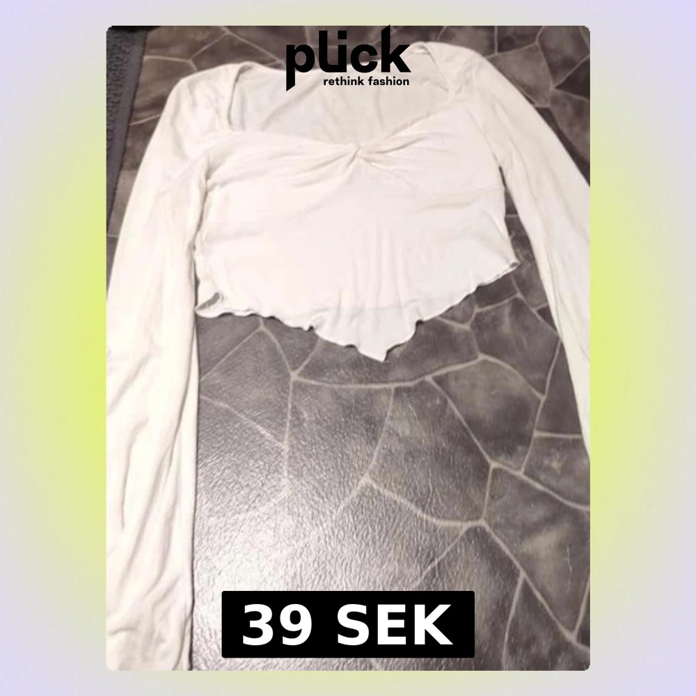 Säljer en vit croppad topp med lång ärm och twistad detalj framtill. Toppen har en vågig nederkant och är tillverkad i ett mjukt, tunt material som känns skönt mot huden. Perfekt för dig som gillar trendiga och enkla plagg.