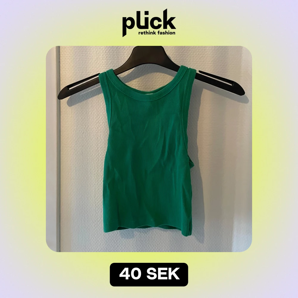 Snygg grön ribbad linnetopp i ett mjukt och stretchigt material. Perfekt för sommardagar eller som ett lager under en jacka. Toppen är ärmlös och har en enkel design som gör den lätt att matcha med olika outfits.