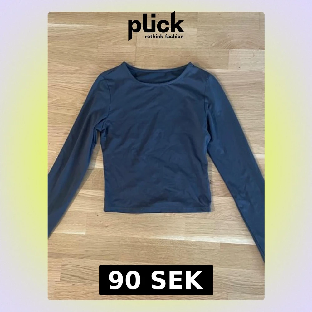 En enkel och stilren mörkblå långärmad topp med rund halsringning. Toppen har en croppad passform och är tillverkad i ett mjukt och stretchigt material som känns skönt mot huden. Perfekt att matcha med jeans eller kjol.