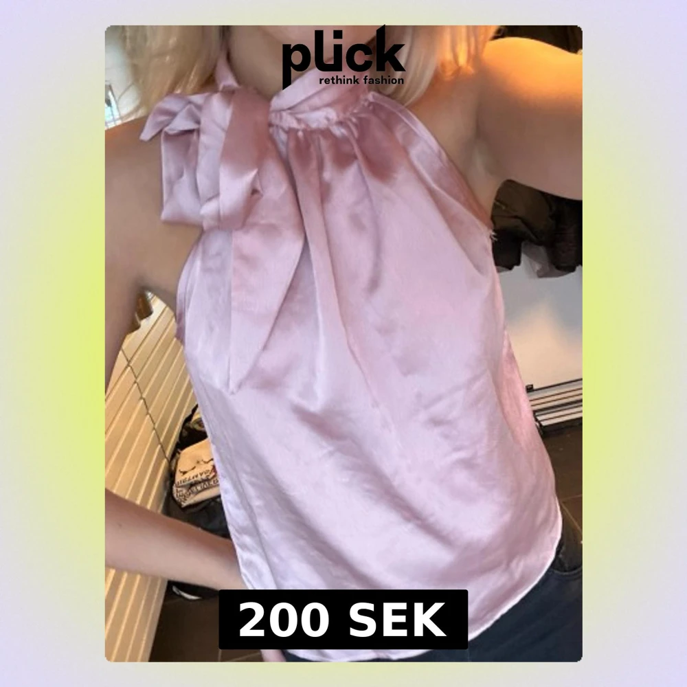 Snygg ljusrosa halterneck topp i glansigt satinliknande material. Toppen är ärmlös och har en stor rosett vid halsen som ger en extra touch. Perfekt för dig som vill sticka ut lite extra.