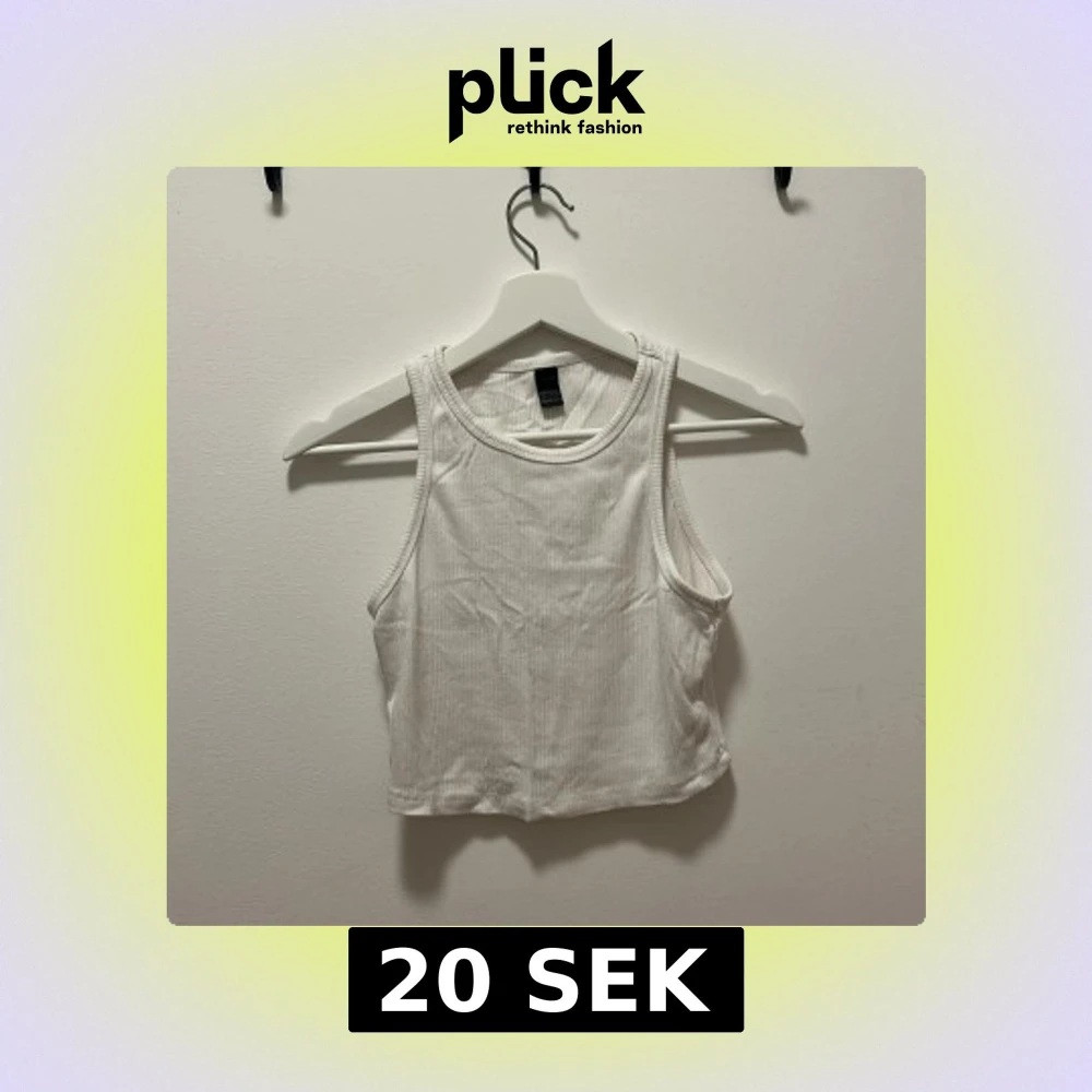 Säljer en enkel och fräsch vit croppad linnetopp. Toppen är ribbad och ärmlös med rund halsringning, perfekt för varma dagar och passar dig som gillar en clean och stilren look. Den är något nopprig på baksidan.