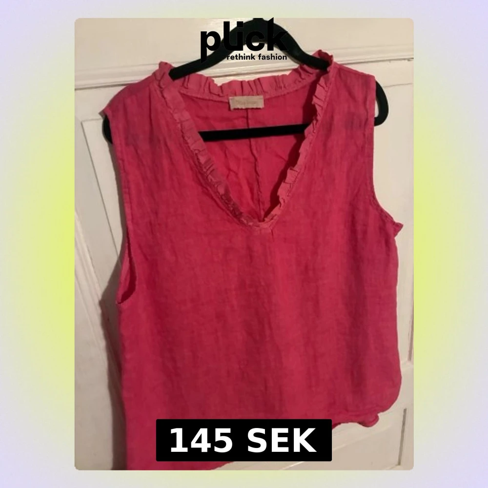 Säljer en snygg rosa linnetopp från Chica London. Toppen är ärmlös med v-ringning och har volangdetaljer längs halsringningen. Perfekt för varma dagar och enkel att styla med jeans eller kjol.