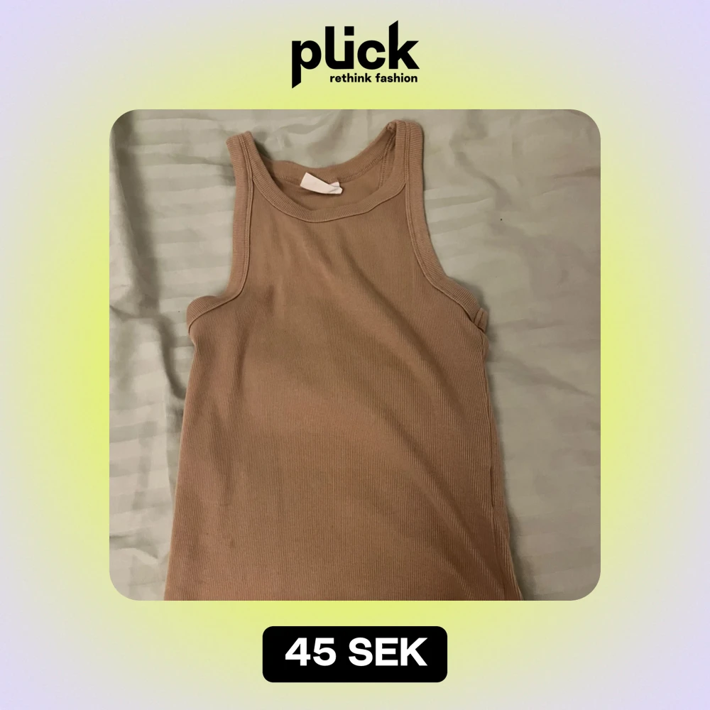 Säljer en snygg beige ribbad linnetopp i mycket bra skick. Perfekt för sommardagar eller som ett basplagg i garderoben. Den är ärmlös och har en bekväm passform. Passar till både jeans och kjol!