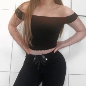 Svart off shoulder crop top i resårband. Storlek -XS Skick - oanvänd Passform - kvinna
